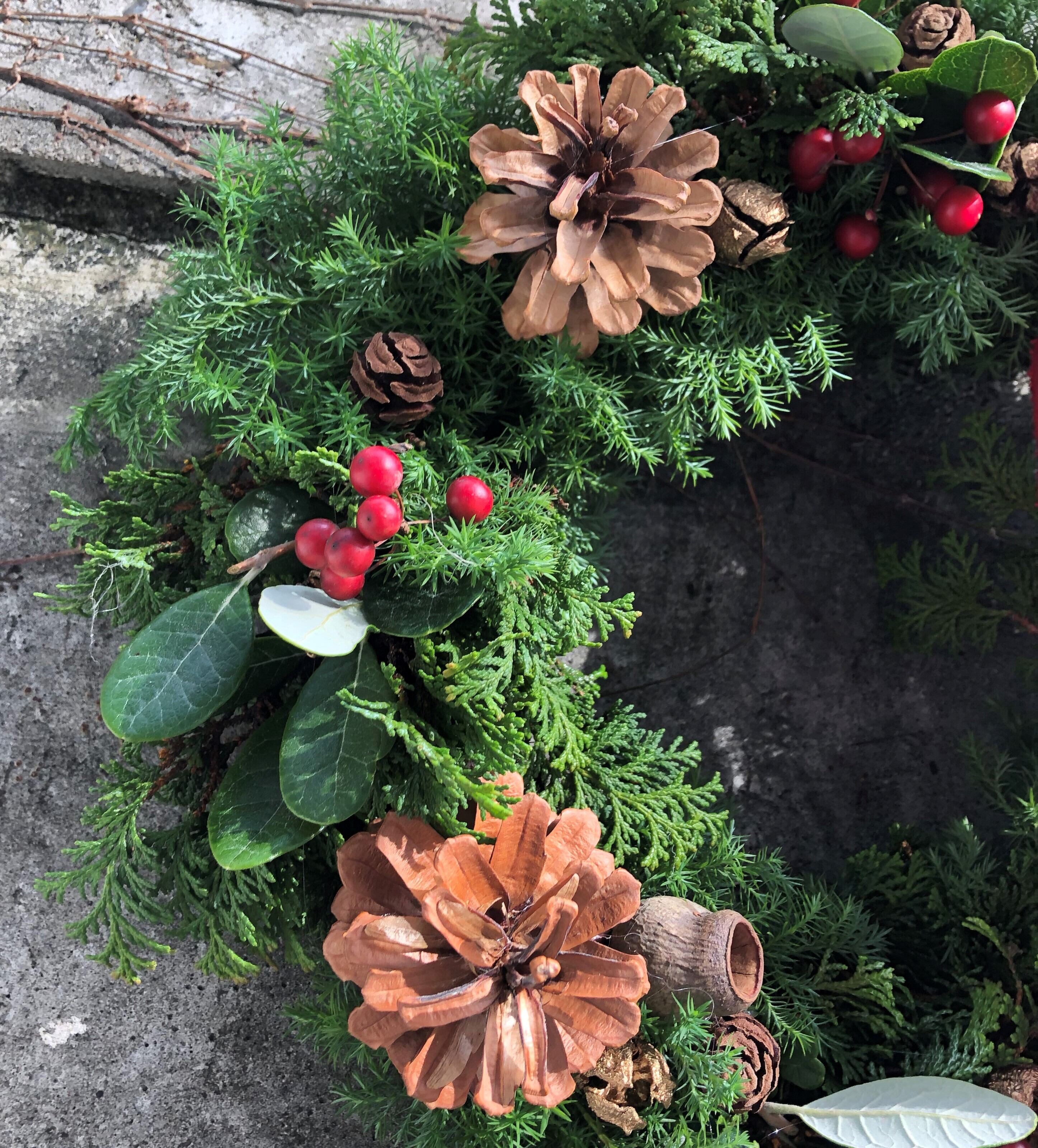 グリーンの香り高いリースをクリスマスのディスプレイに飾りませんか?