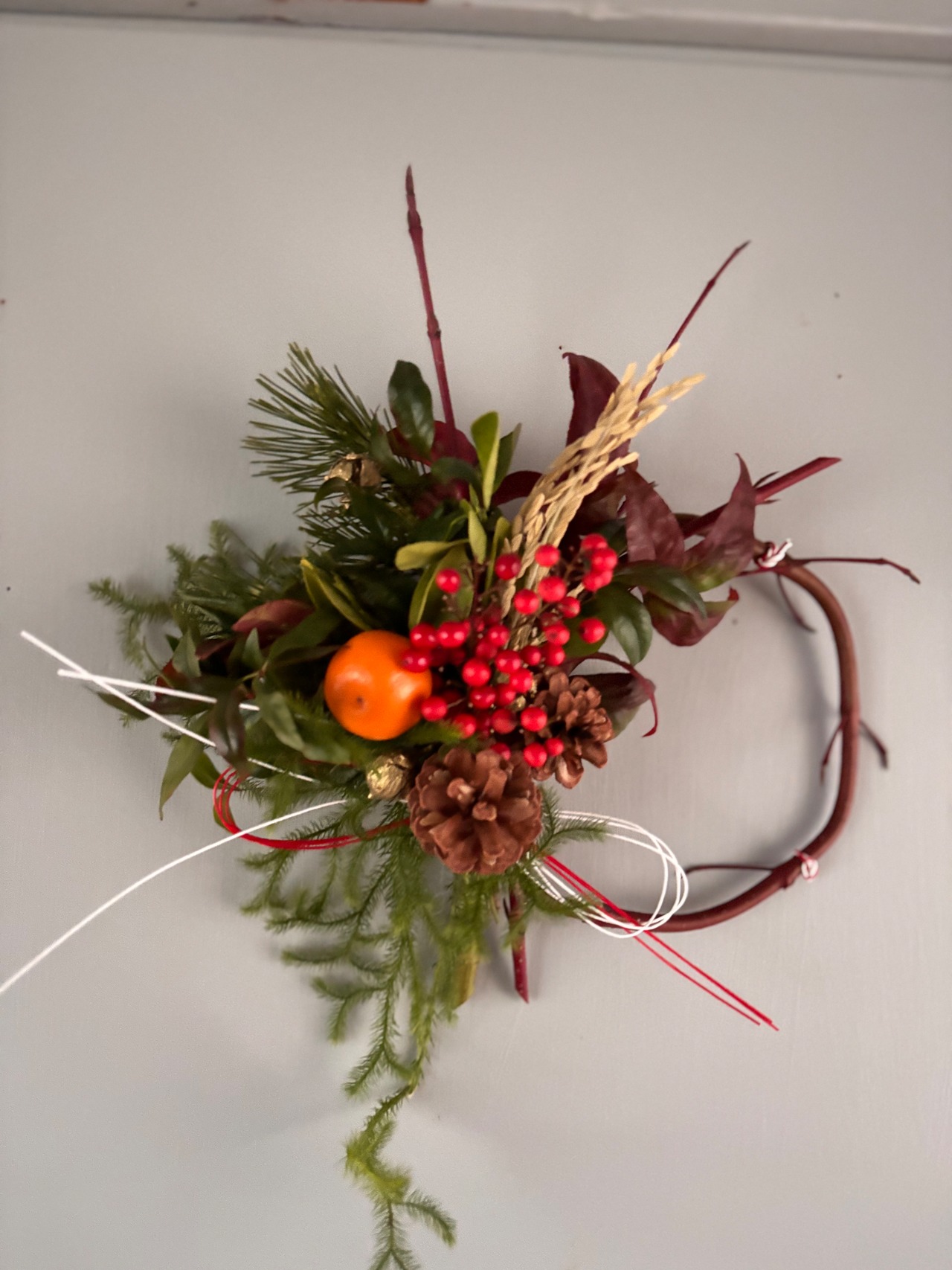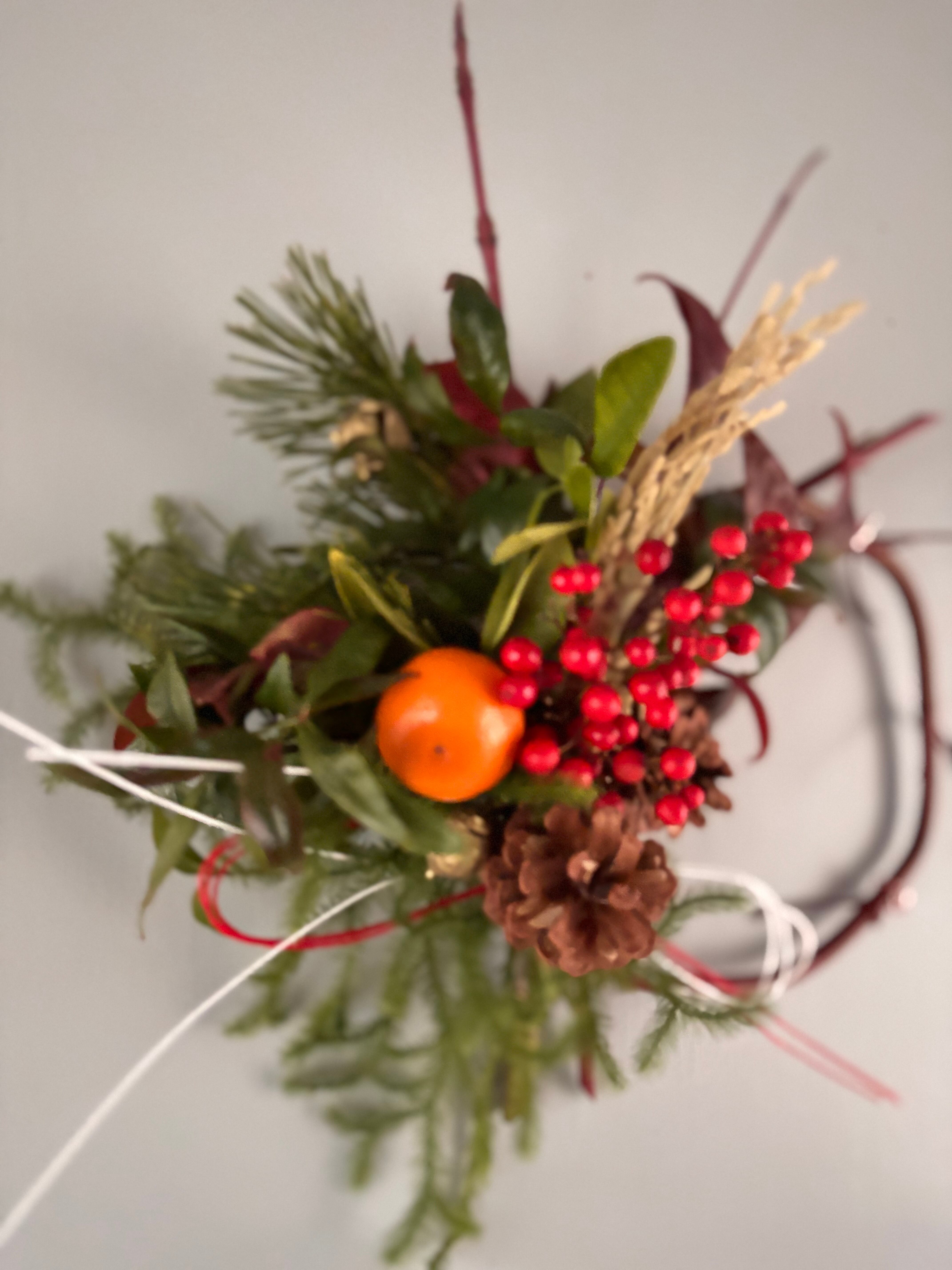 厄除けやお祝いの色の赤をサンゴミズキを和飾りにして