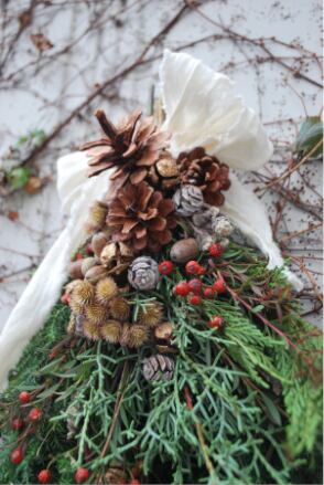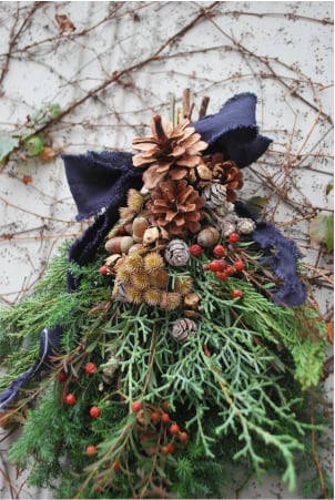木の実をふんだんにあしらったクリスマスデコレーションです。